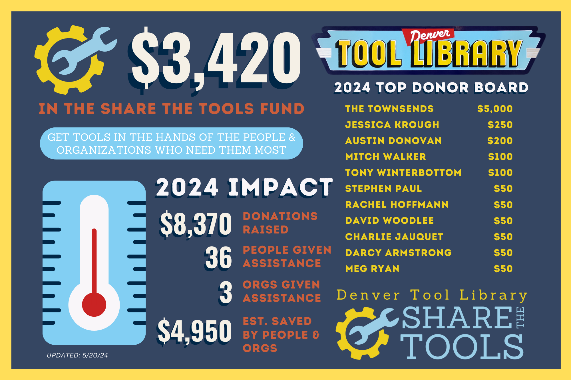 Thank you EVERYONE who has donated to our Share the Tools Fund big and small. With our new and improved Financial Assistance Program open, your contributions have already helped 36 people and 3 organizations get help affording our services - we estimate that to be $4,950 in assistance!